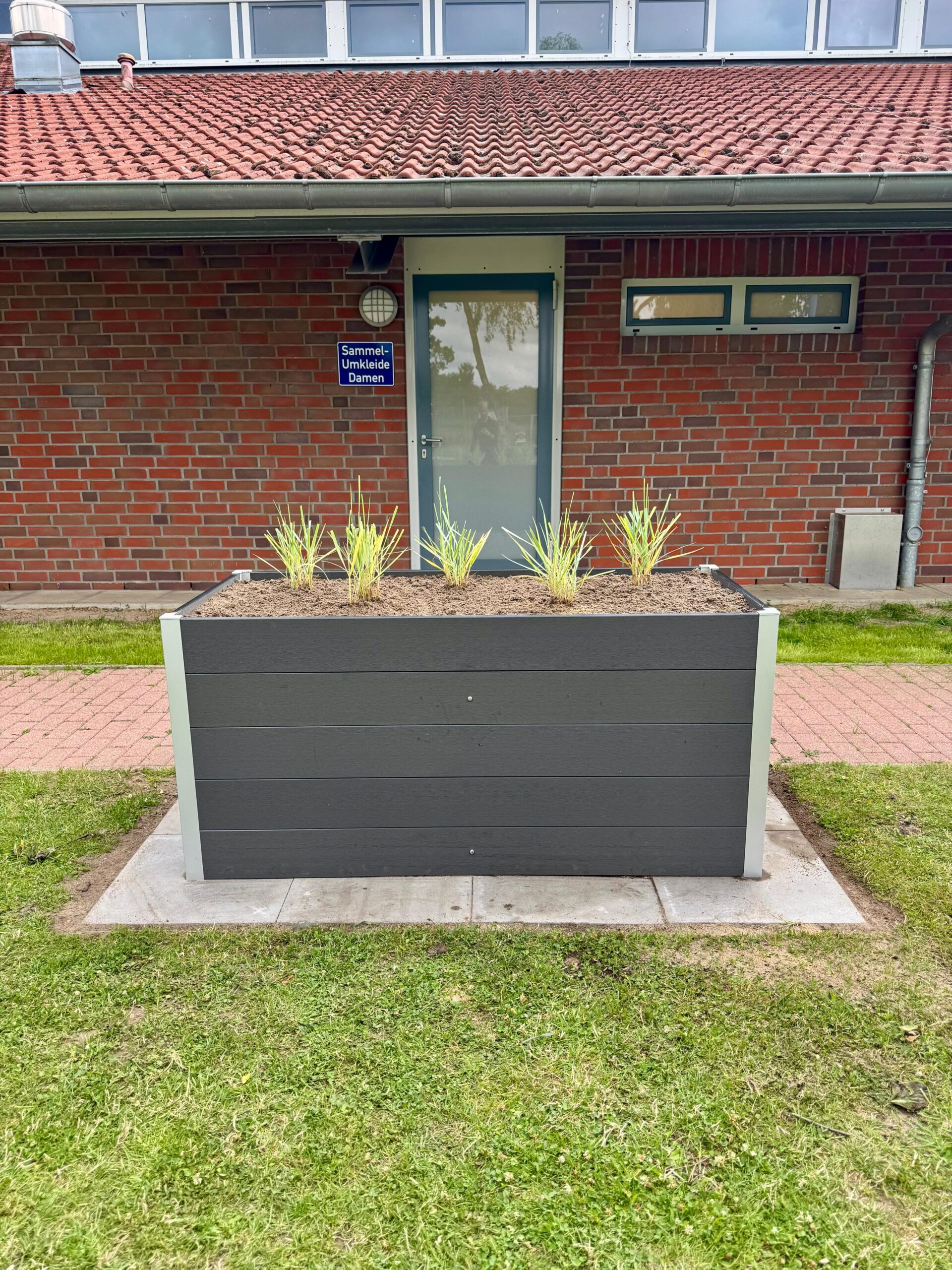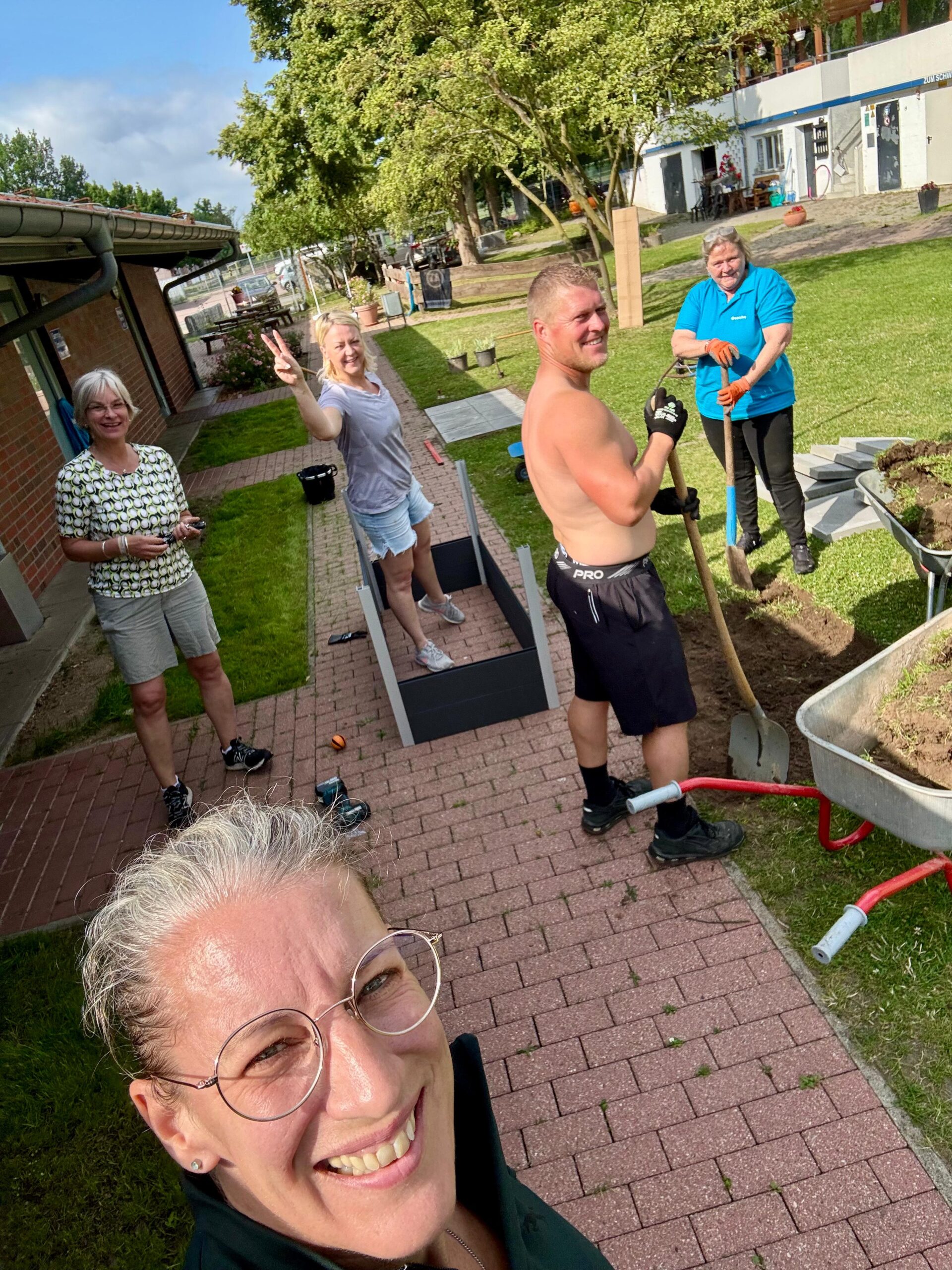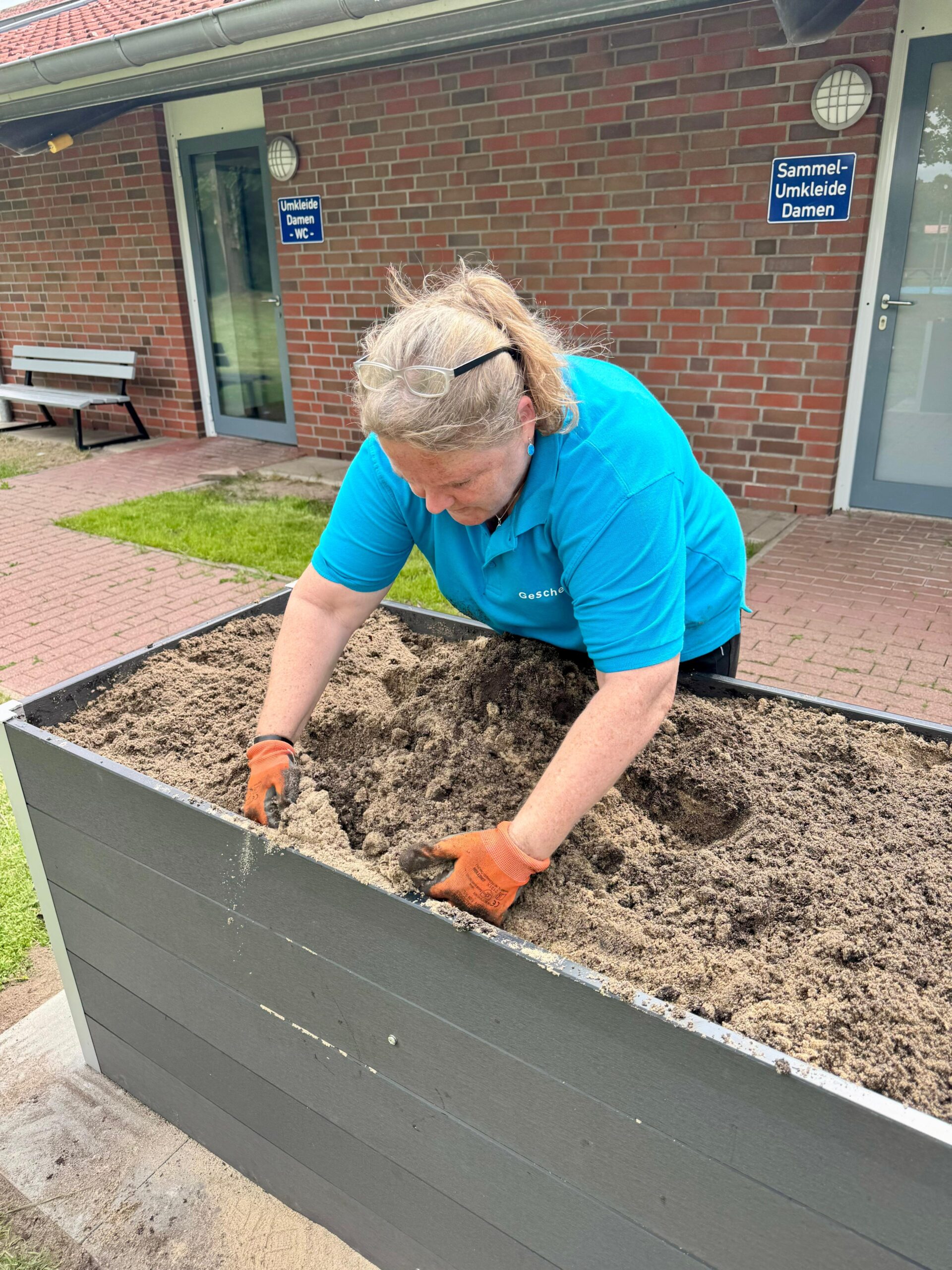 Aufbau der Hochbeete als Sichtschutz vor den Umkleiden