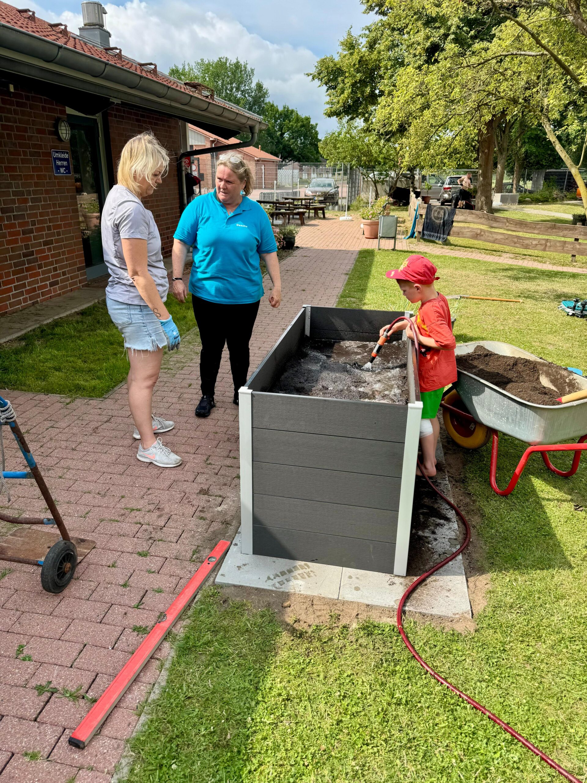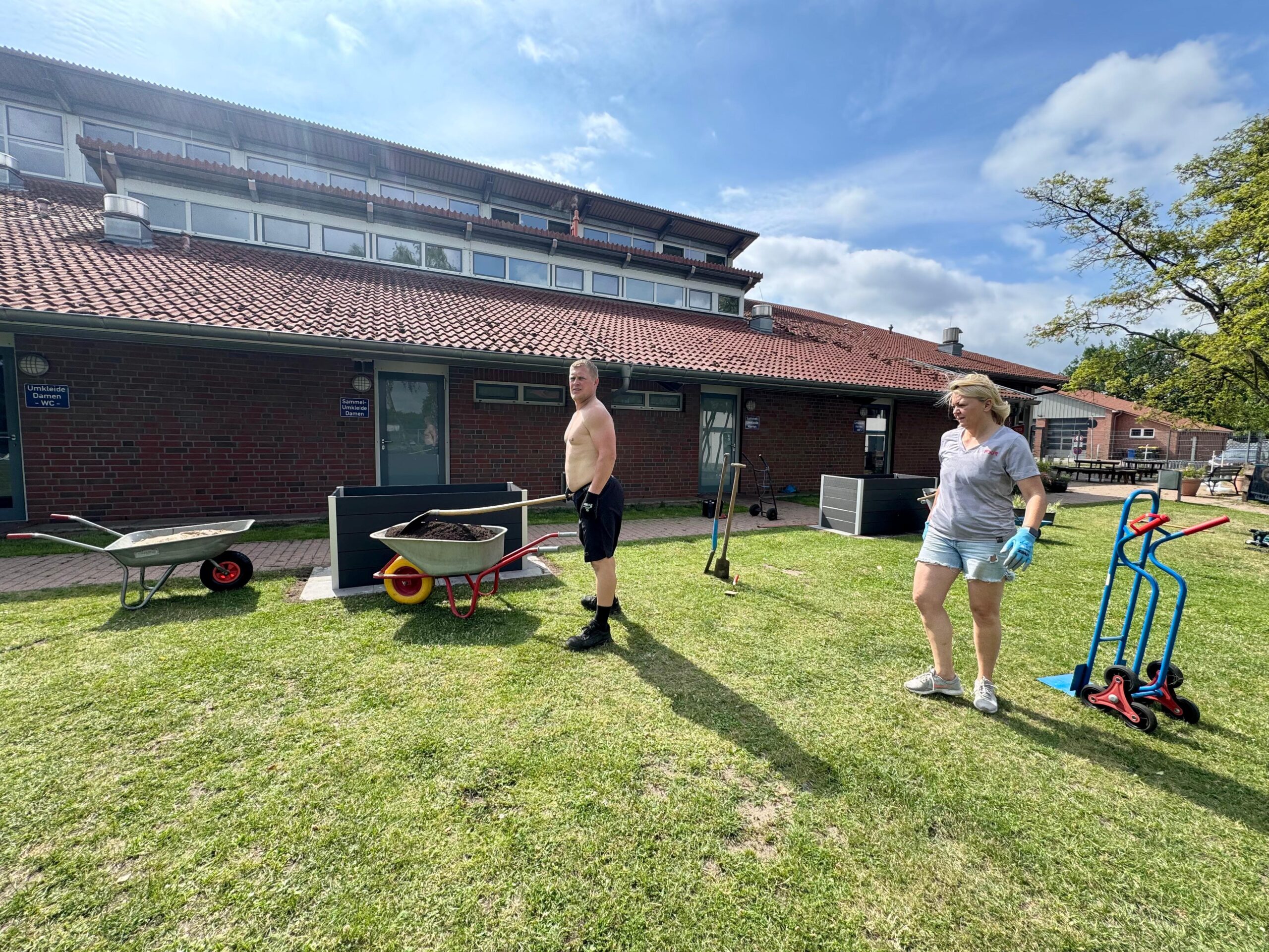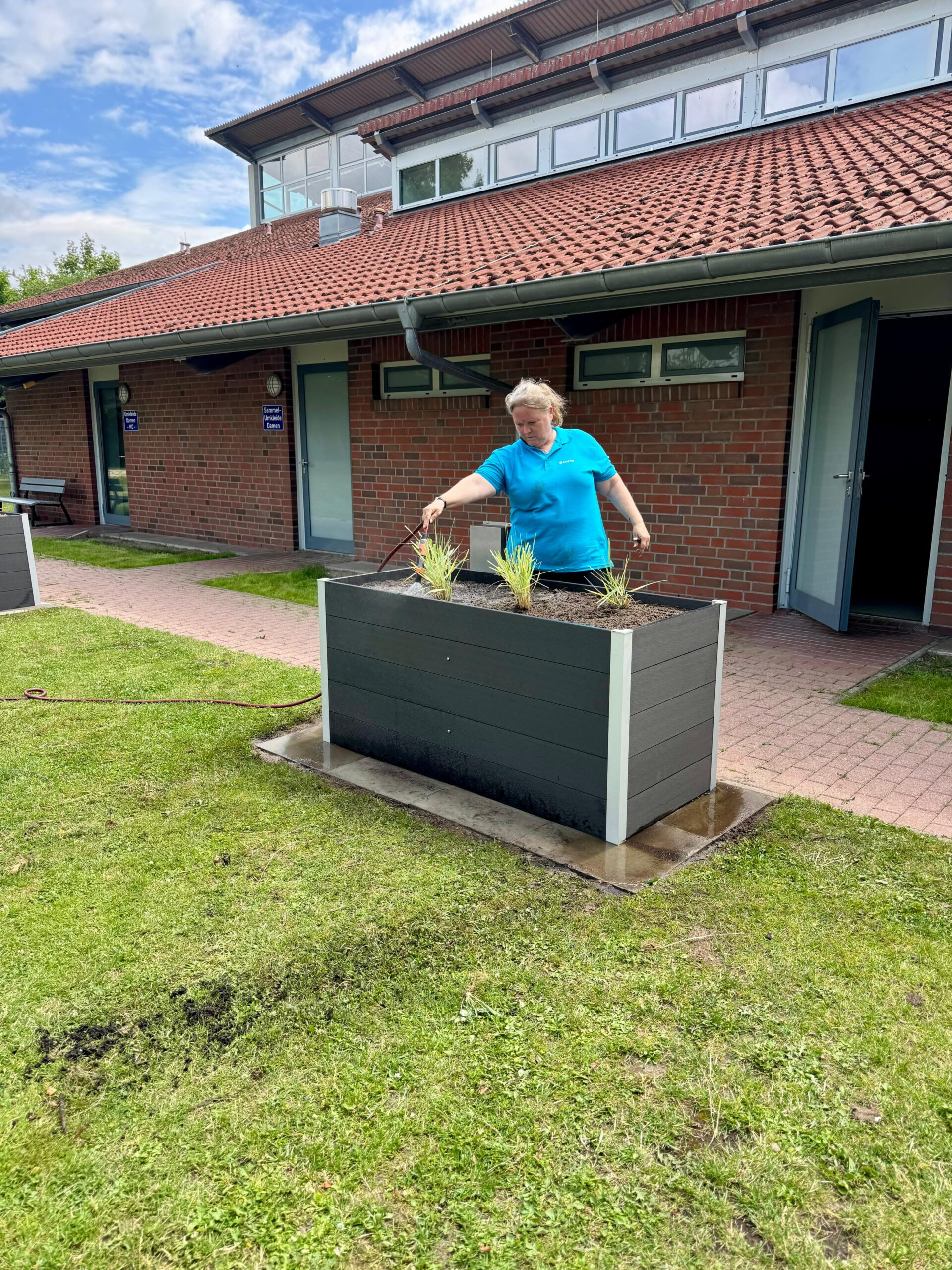 Aufbau der Hochbeete als Sichtschutz vor den Umkleiden