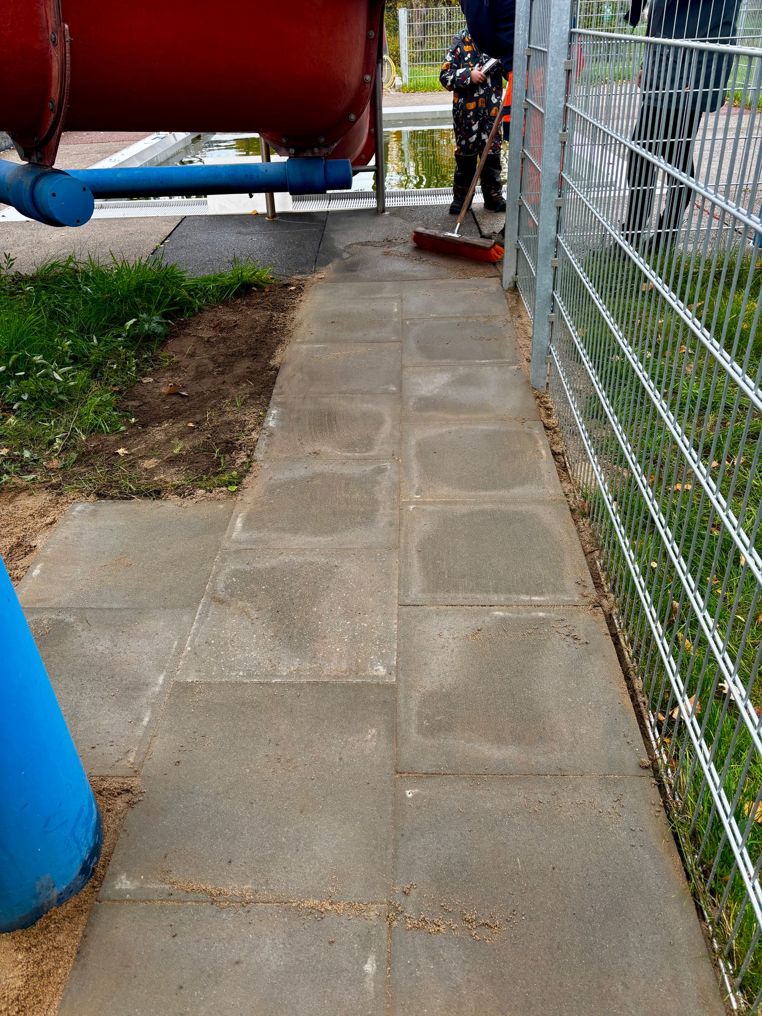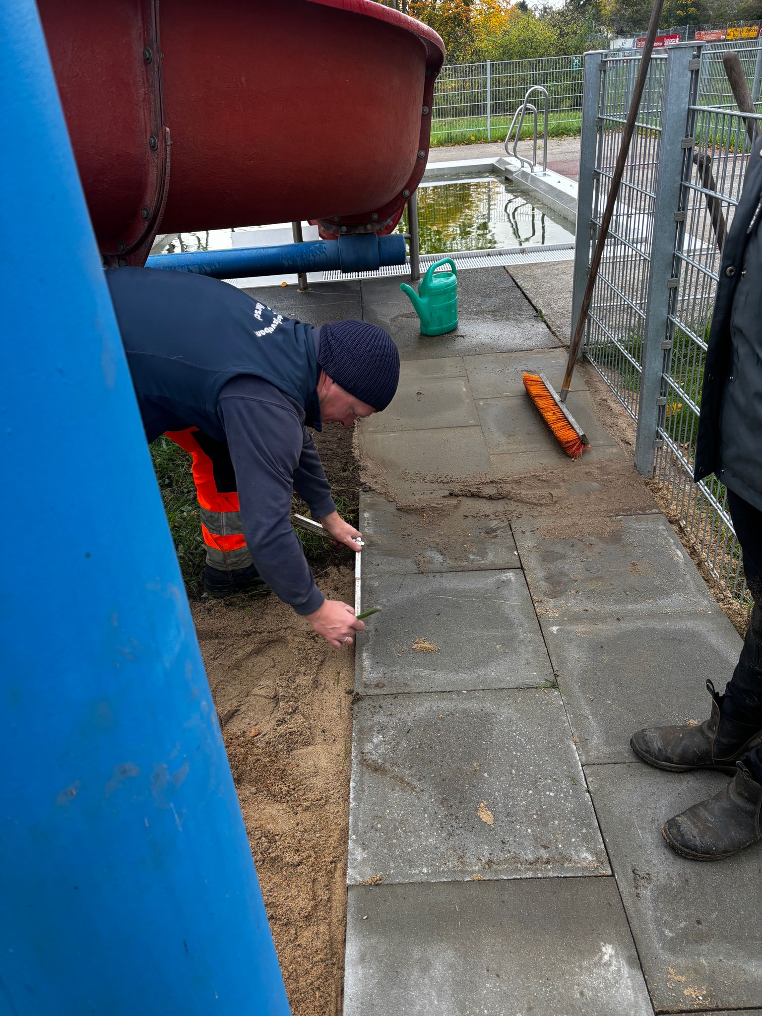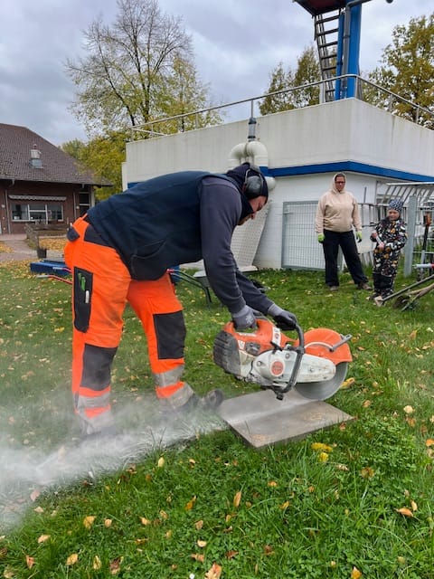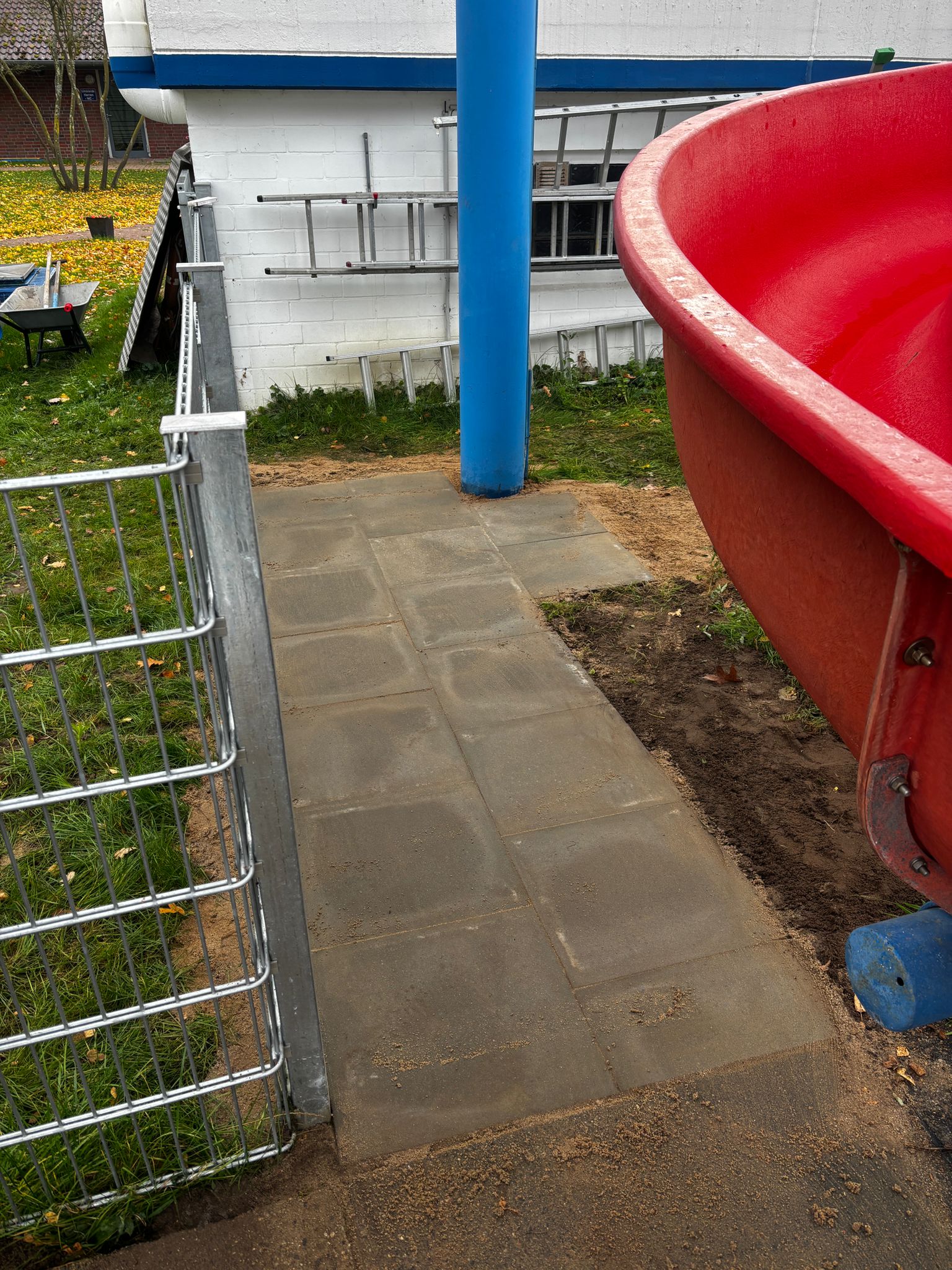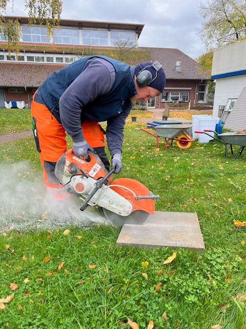 Arbeitseinsatz: Verlegen von Gehwegplatten